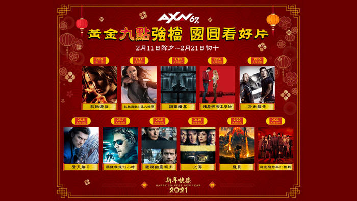 2021牛年賀歲,AXN春節強檔電影連環發,從2月11日除夕至2月21日大年初十,祭出一連十一天「黃金強檔」片單從早到晚不間斷,部部精彩電影即將熱鬧登場!